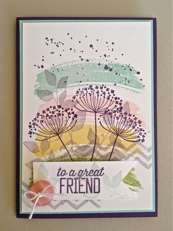 This was such a fun card to make and my Crafty Tuesday ladies enjoyed it a lot. Collage stamping is one of my many favourite techniques and I think the stamp sets Work of Art, Summer Silhouettes and Gorgeous Grunge combine beautifully.