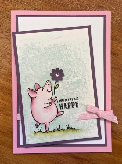 When the 2017 -18 Stampin' Up! Annual Catalogue was released, one of the stamp sets that caught my eye was the "This Little Piggy" set on page 48. As many of you know I love to colour, and I could imagine this set done in watercolour and this is what I came up with for my daytime class.